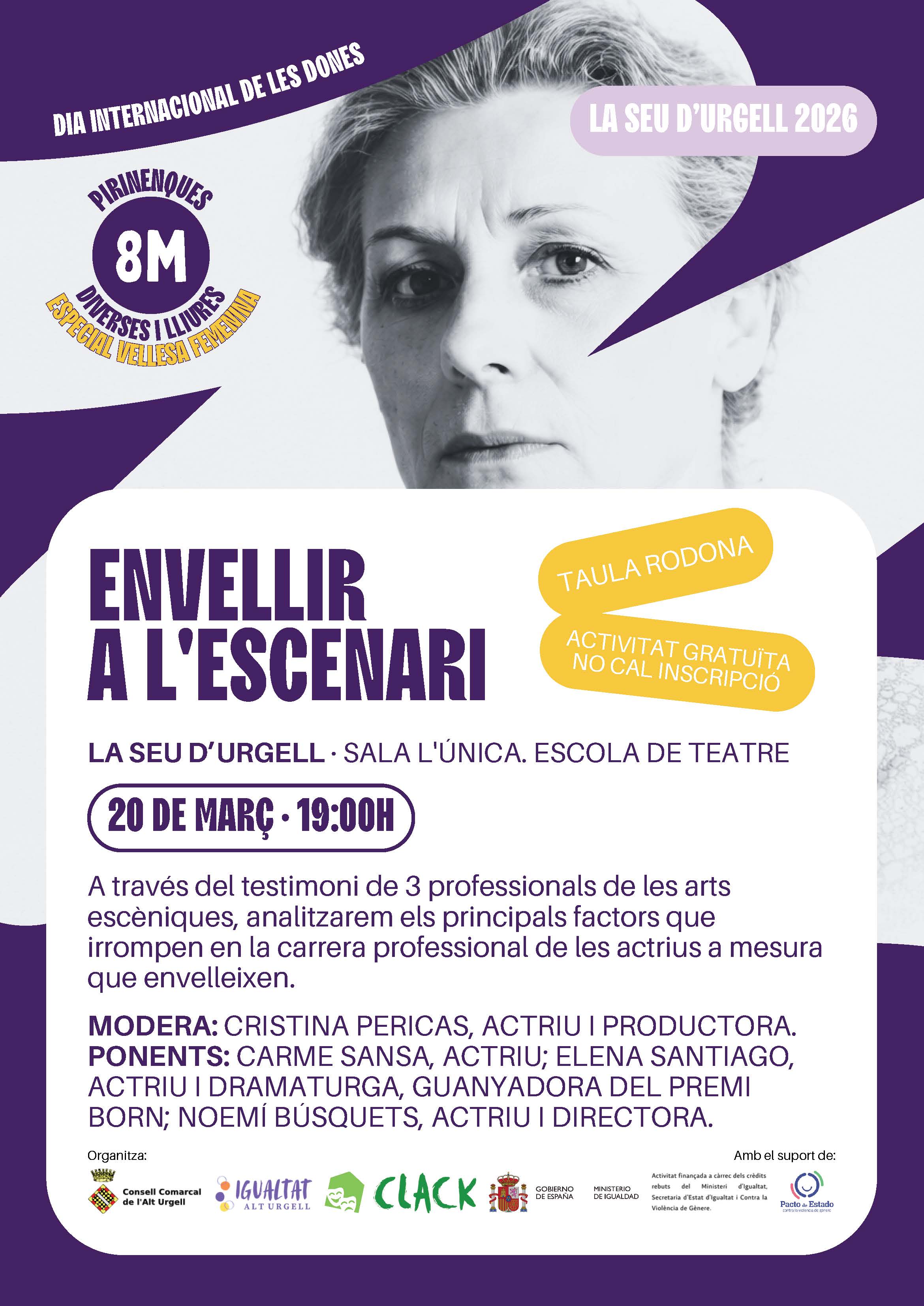 8M: TAULA RODONA AMB TRES PROFESSIONALS DE LES ARTS ESCÈNIQUES. "ENVELLIR A L'ESCENARI", A LA SALA ÚNICA. ESCOLA DE TEATRE DE LA SEU D'URGELL