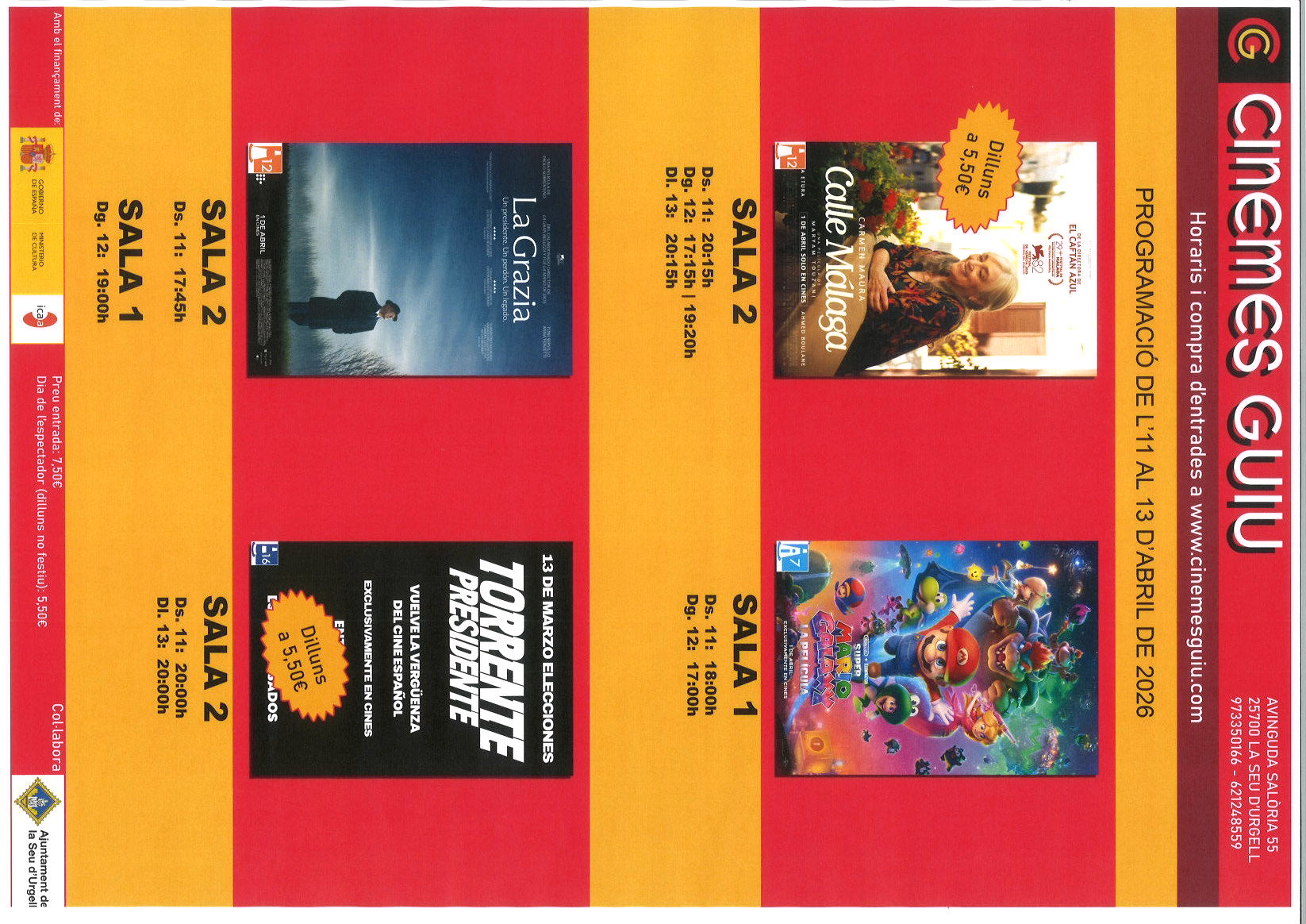 CINEMES GUIU: PROGRAMACIÓ DE L'11 AL 13 D'ABRIL DE 2026