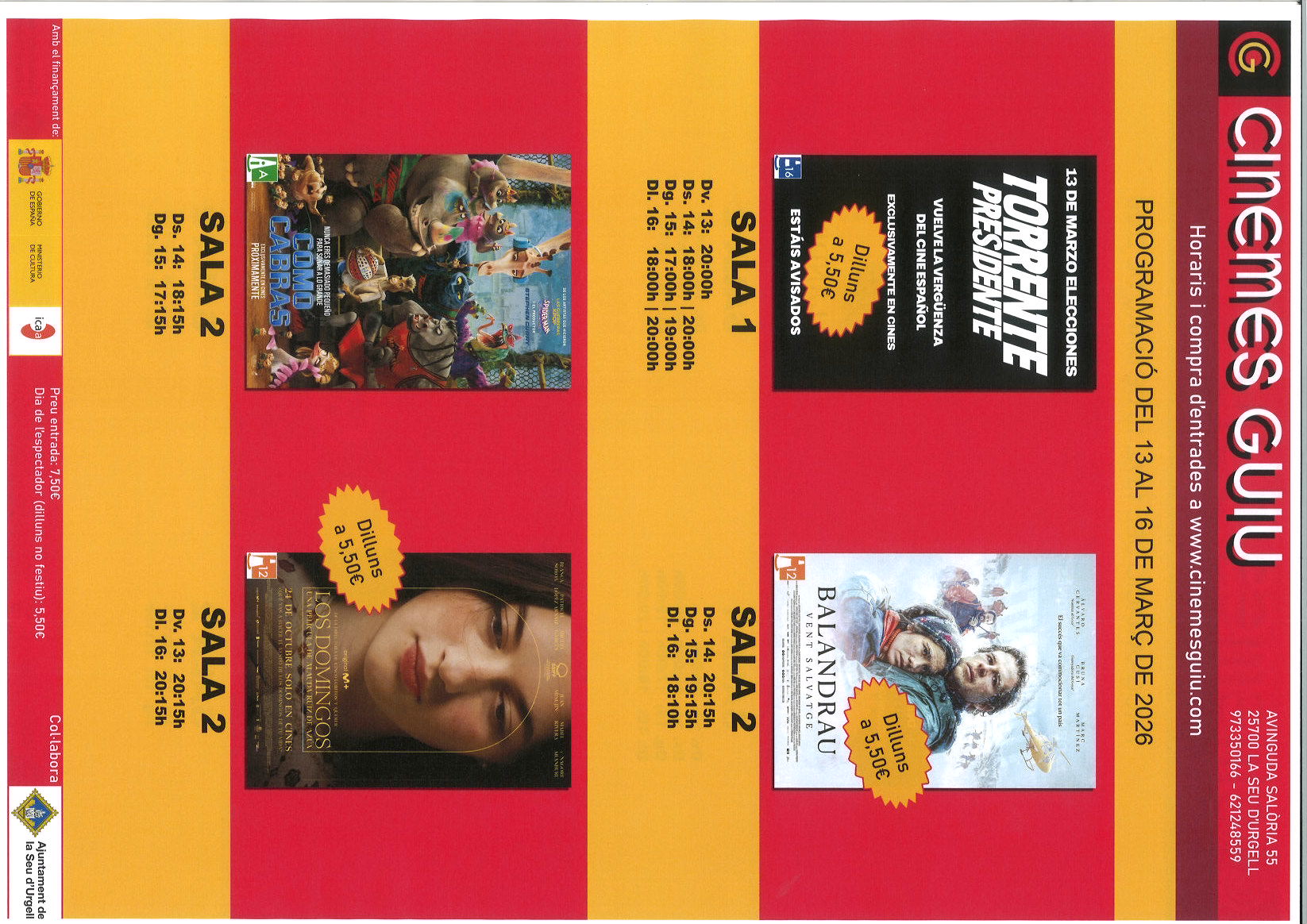CINEMES GUIU. PROGRAMACIÓ DEL 13 AL 16 DE MARÇ