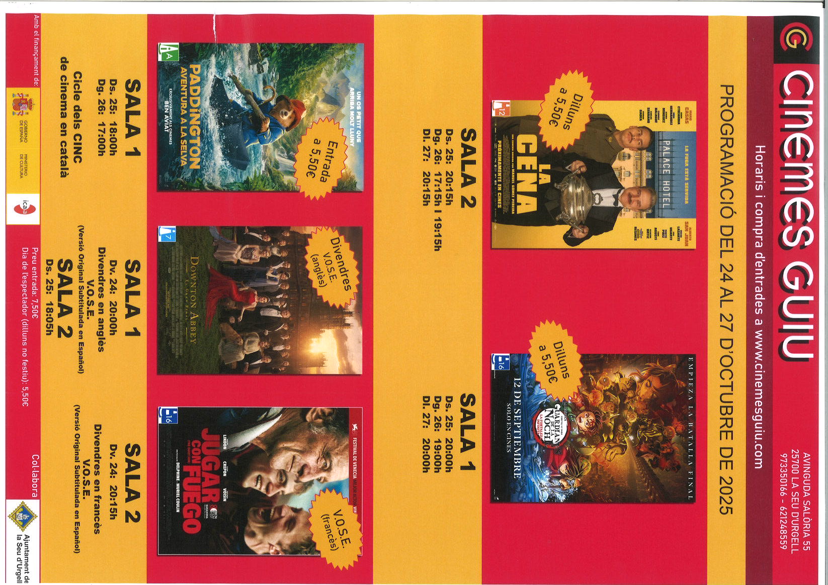 CINEMES GUIU: PROGRAMACIÓ DEL 24 AL 27 D'OCTUBRE DE 2025