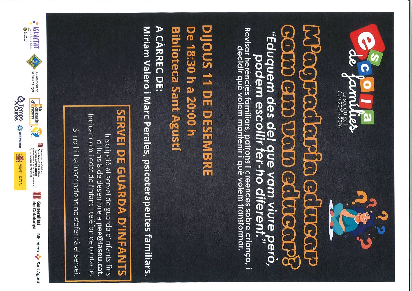 ESCOLA DE FAMÍLIES: M'AGRADARIA EDUCAR COM EM VAN EDUCAR? EDUQUEM DES DEL QUE VAM VIURE PERÒ, PODEM ESCOLLIR FER-HO DIFERENT - BIBLIOTECA SANT AGUSTÍ