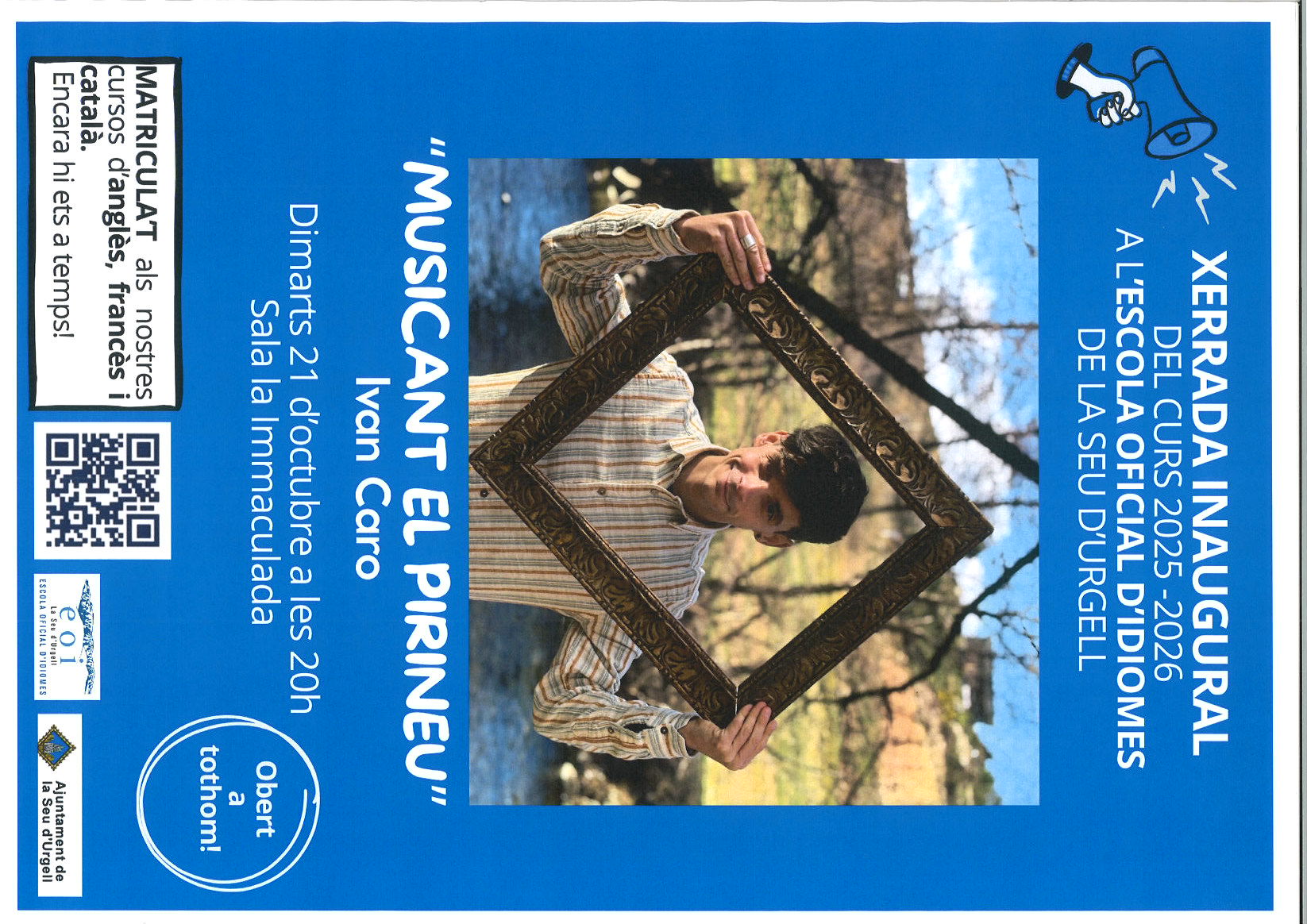 ESCOLA OFICIAL D'IDIOMES: XERRADA INAUGURAL DEL CURS 2025-2026. MUSICANT EL PIRINEU, PER IVAN CARO