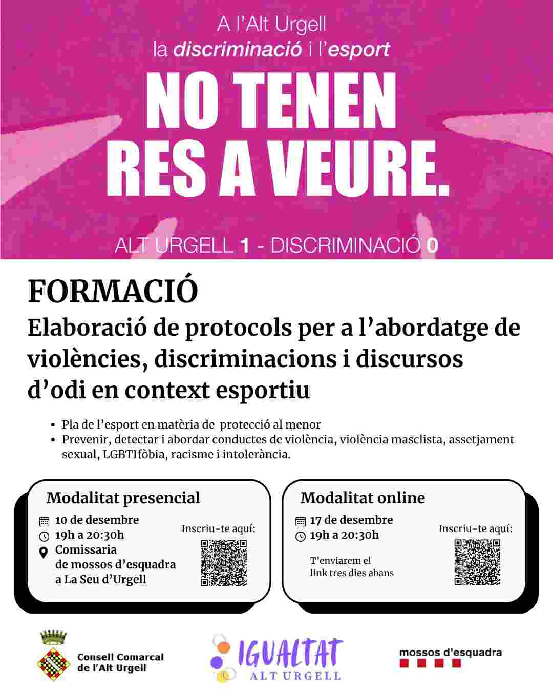 FORMACIÓ: ELABORACIÓ DE PROTOCOLS PER A L'ABORDATGE DE VIOLÈNCIES, DISCRIMINACIONS I DISCURSOS D'ODI EN CONTEXT ESPORTIU A LA COMISSARIA DE MOSSOS D'ESQUADRA DE LA SEU