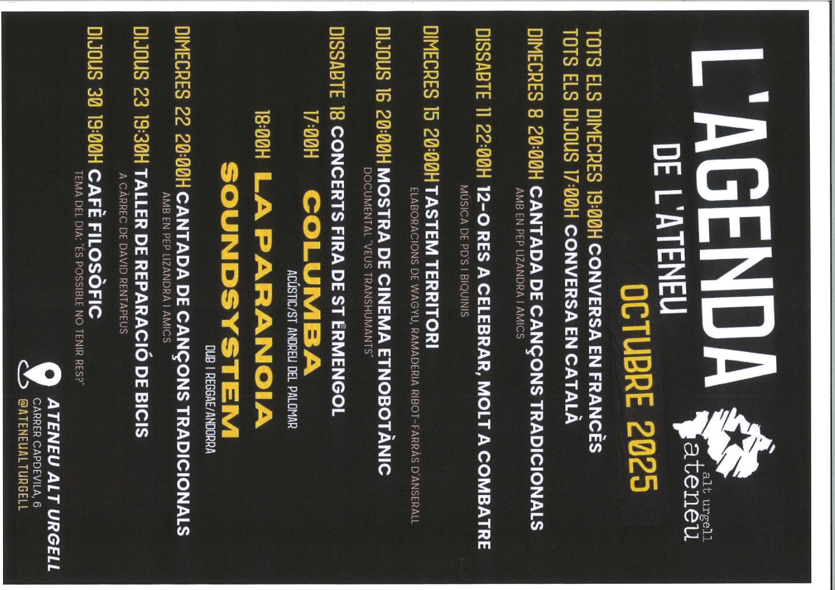 L'AGENDA DE L'ATENEU - OCTUBRE 2025: CANTADA DE CANÇONS TRADICIONALS, AMB EN PEP LIZANDRA I AMICS