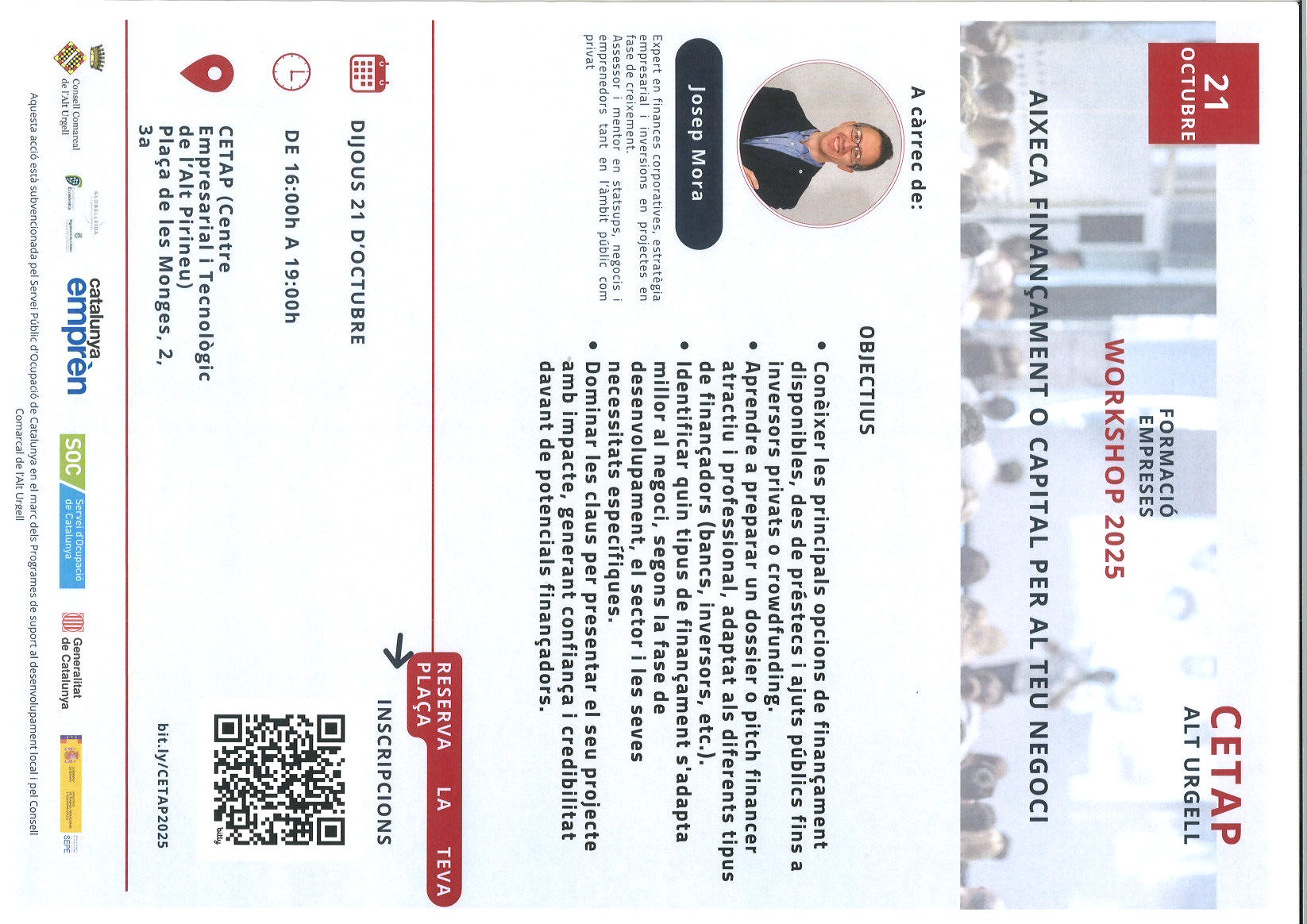 WORKSHOP 2025: FORMACIÓ PER A EMPRESES - AIXECA FINANÇAMENT O CAPITAL PER AL TEU NEGOCI