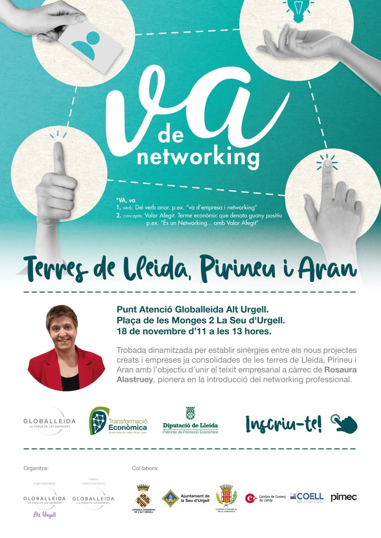 El dimarts 18 de novembre, el Punt d’Atenció Globalleida Alt Urgell acollirà el “Va de Networking Final 2025”, una trobada imprescindible per a emprenedors i empreses de les Terres de Lleida, Pirineu i Aran. L’activitat, que tindrà lloc d’11 a 1 a l’edifici del CETAP (Plaça de les Monges de la Seu d’Urgell), està oberta a totes les persones emprenedores i empreses, tant les que han participat anteriorment en les sessions de networking com les que s’hi vulguin sumar per primera vegada.