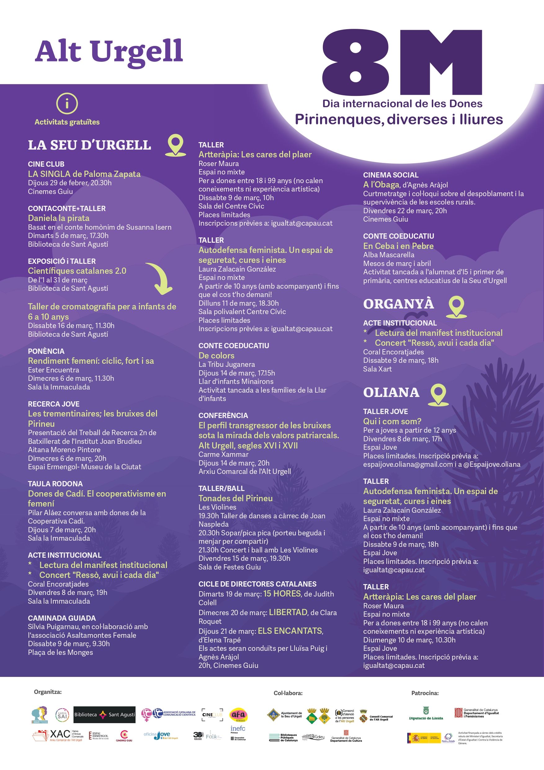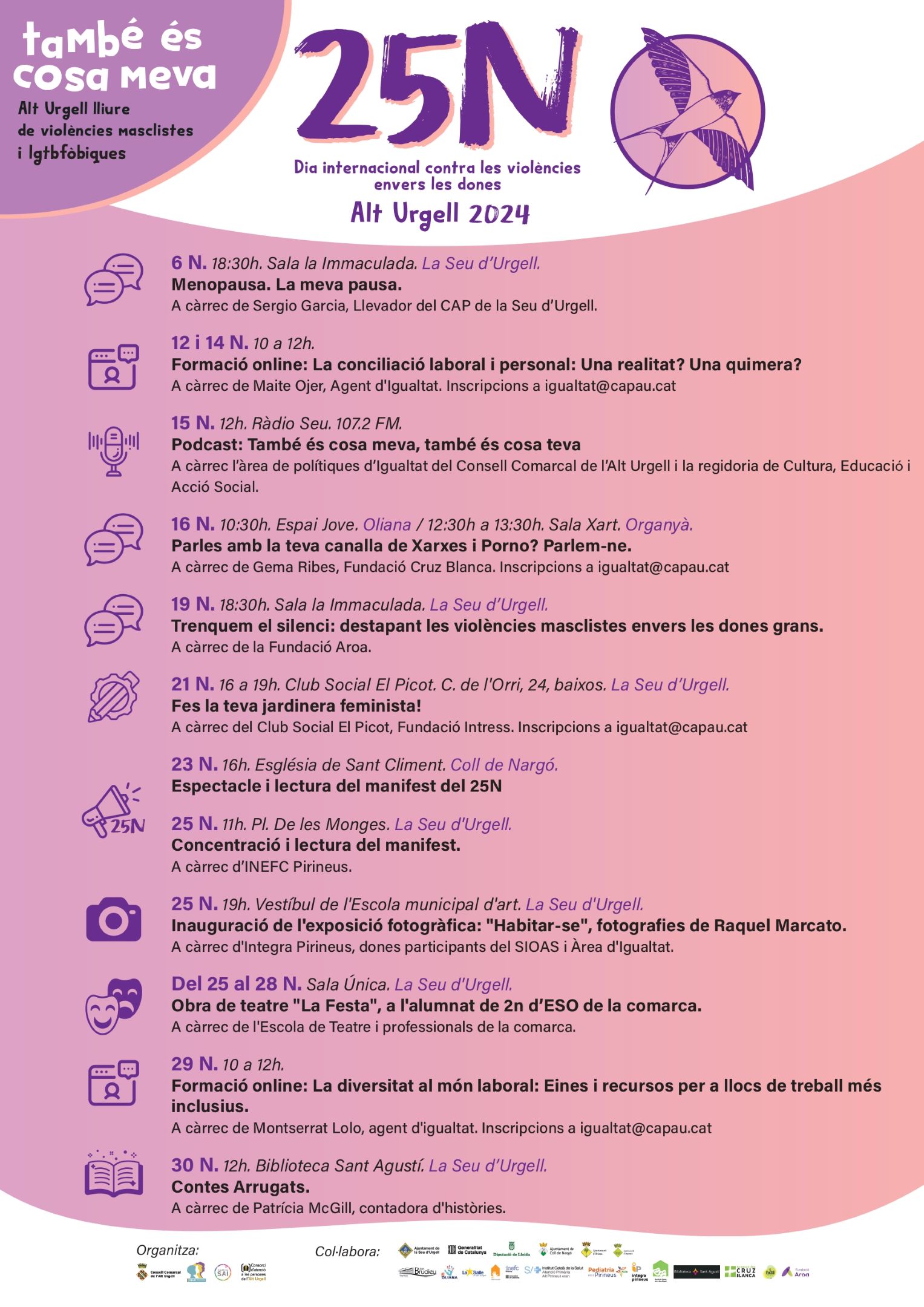 És un servei gratuït i confidencial, per més informació podeu adreçar-vos al correu igualtat @ capau.cat o a l’àrea d’igualtat del Consell Comarcal de l’Alt Urgell (671 09 75 50).