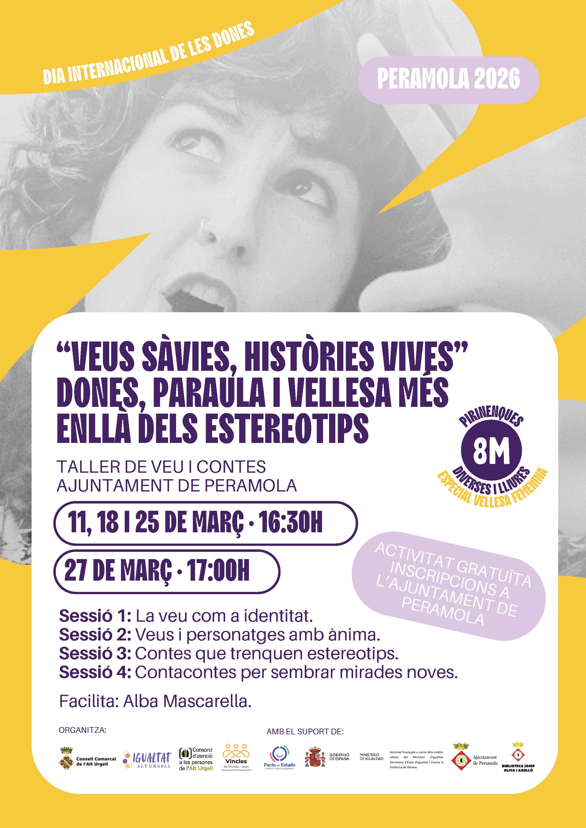 8M: TALLER DE VEU I CONTES: "VEUS SÀVIES, HISTÒRIES VIVES". DONES, PARAULA I VELLESA MÉS ENLLÀ DELS ESTEREOTIPS, A l'AJUNTAMENT DE PERAMOLA