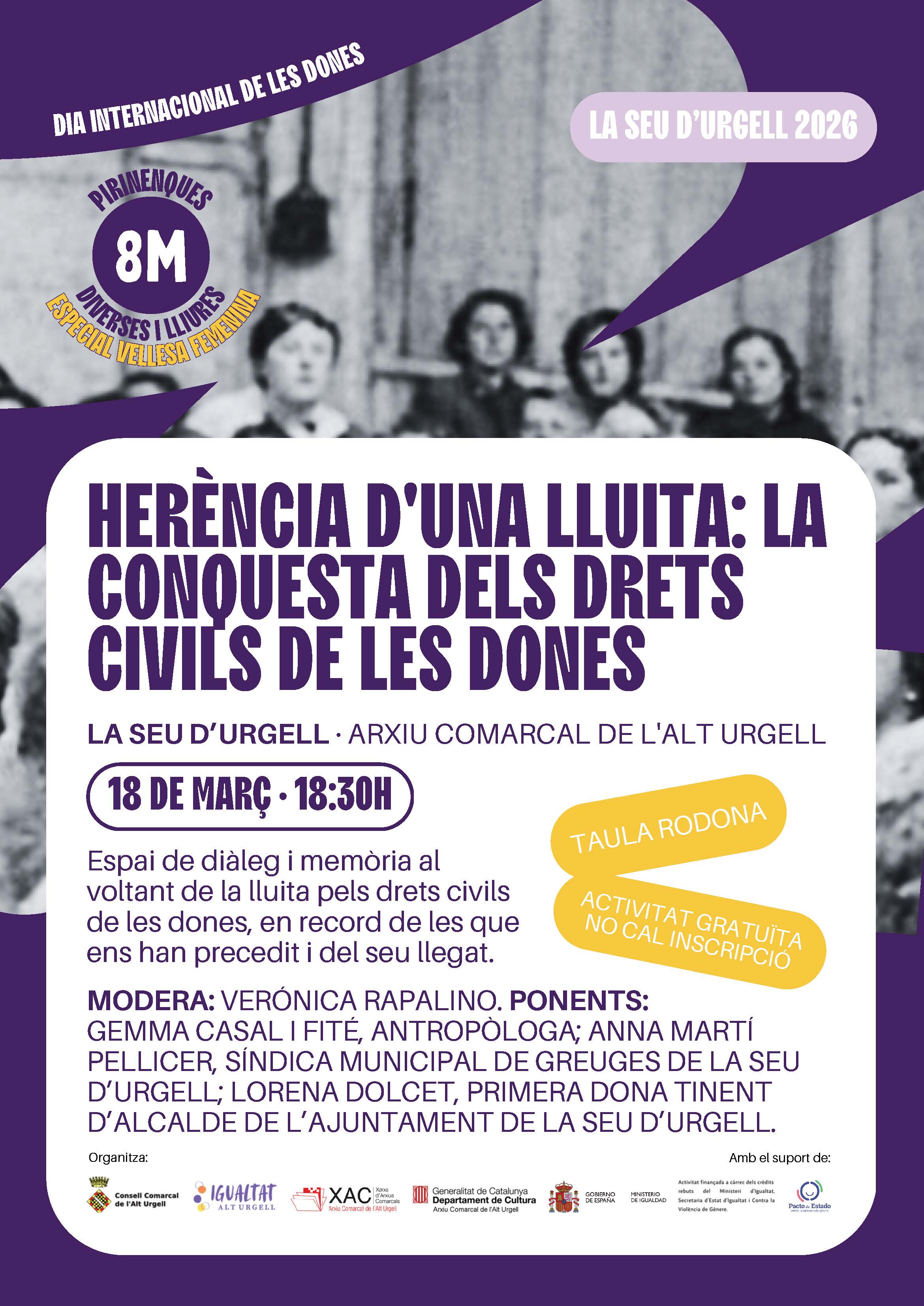 8M: TAULA RODONA. "HERÈNCIA D'UNA LLUITA: LA CONQUESTA DELS DRETS CIVILS DE LES DONES", A L'ARXIU COMARCAL DE L'ALT URGELL