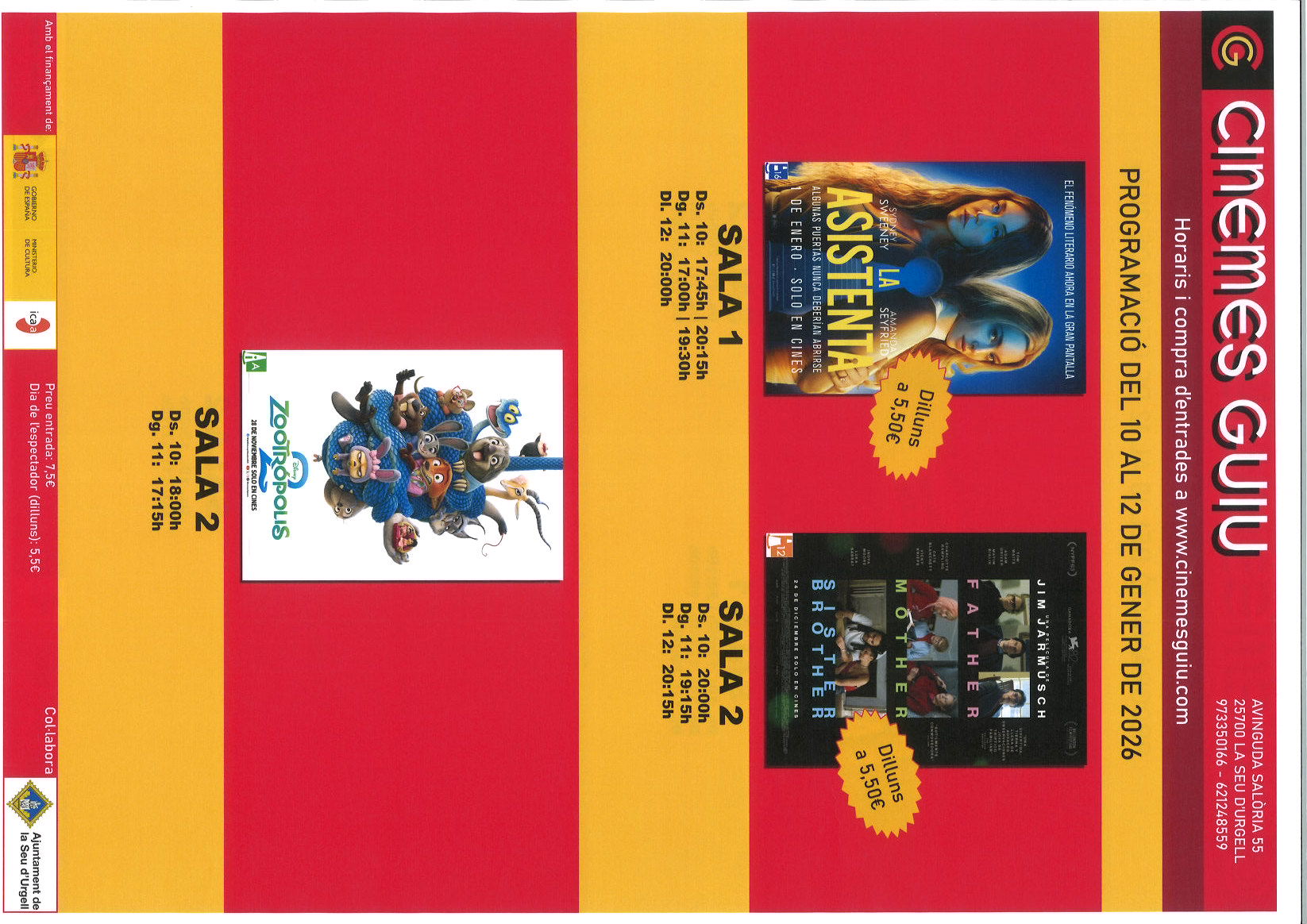 CINEMES GUIU: PROGRAMACIÓ DEL 10 AL 12 DE GENER DE 2026