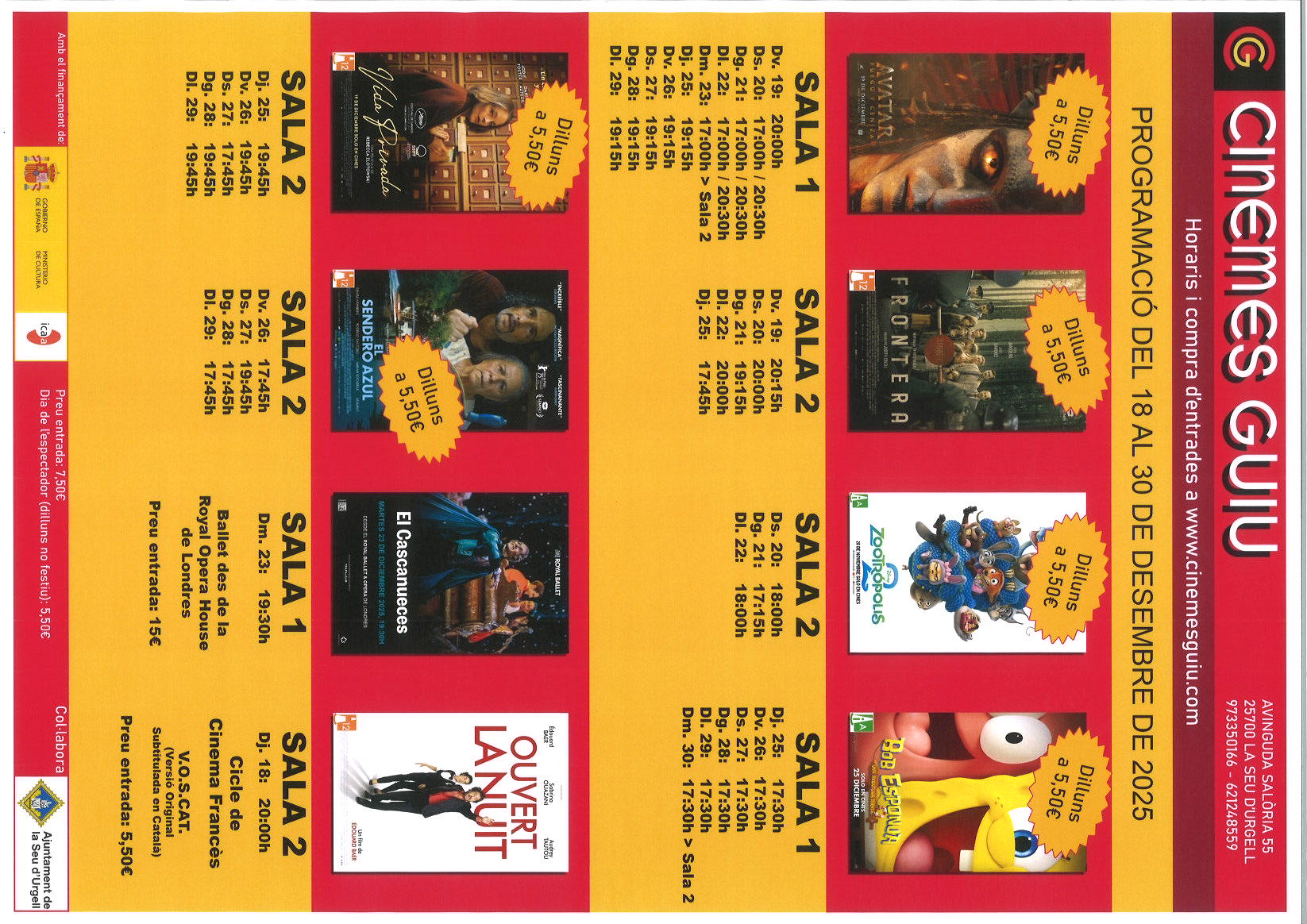 CINEMES GUIU: PROGRAMACIÓ DEL 18 AL 30 DE DESEMBRE DE 2025