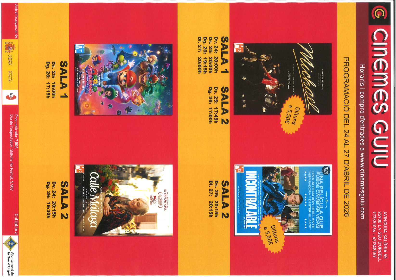 CINEMES GUIU: PROGRAMACIÓ DEL 24 AL 27 D'ABRIL DE 2026