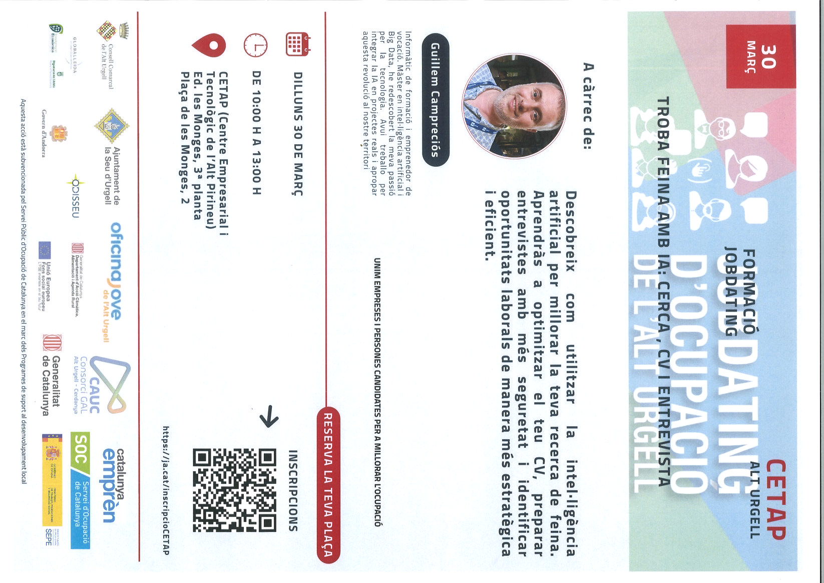 JOBDATING. FORMACIÓ: TROBAR FEINA AMB IA. CERCA, CV i ENTREVISTA AMB GUILLEM CAMPRECIÓS AL CETAP