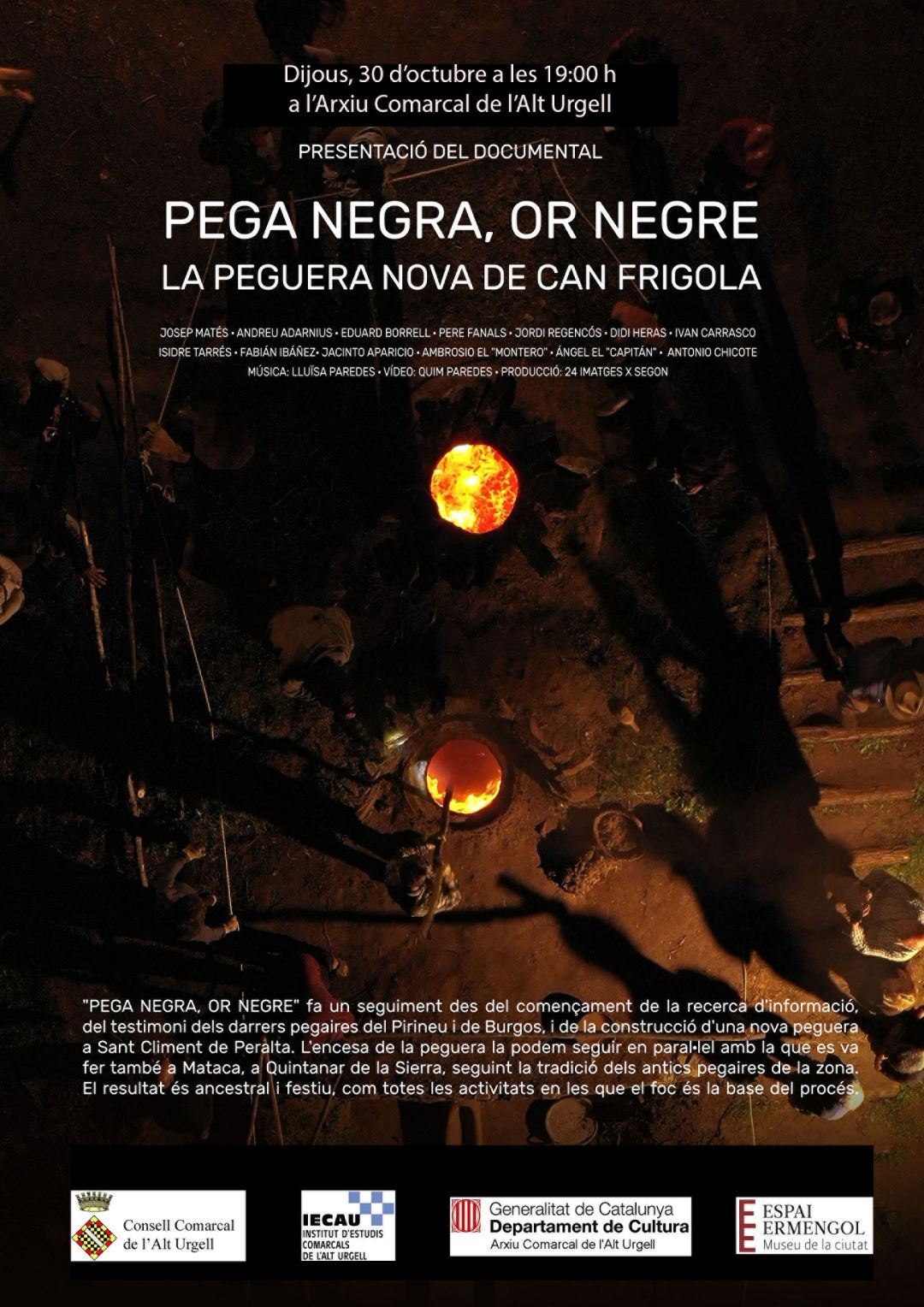 Aquest dijous, 30 d’octubre, l’Arxiu Comarcal de l’Alt Urgell acollirà a les set del vespre la projecció del documental Pega negra, or negre. La peguera nova de can Frigola amb què s’acomiadarà l’edició d’aquest any del cicle Desenterrant el passat.